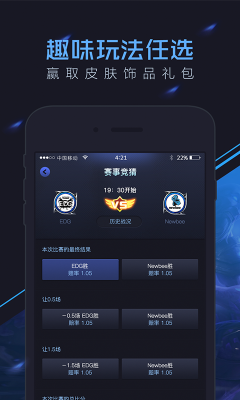 冰火竞技涵盖了丰富的电子竞技赛事内容。目前支持英雄联盟、DOTA2、炉石传说等主流电子竞技游戏的国内外所有赛事投注。平台提供多种玩法选择,包括猜胜负、猜比分、猜首血等多样化的竞猜方式,让您全方位体验电子竞技的魅力。金币商城陈列着数十种实体和虚拟礼品,从Iphone6S到机械键盘,再到LOL皮肤等,应有尽有。我们还提供最新的电竞赛事资讯,实时推荐战队战略战术,分享热点话题,助您在游戏中更上一层楼。此外,平台还会定期更新电竞美女、coser和人气主播的相关内容,为您带来更多精彩内容。