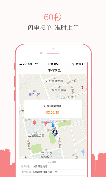 智能匹配:优先为您分配附近评分高的优质师傅,确保服务质量;