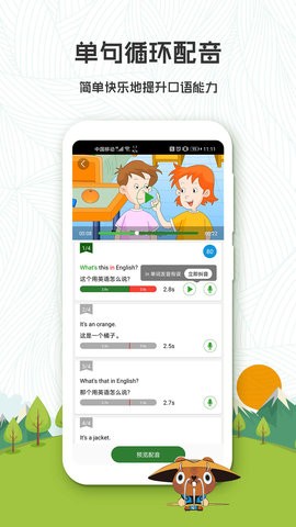好玩配音学口语:软件提供沉浸式配音体验,学生可以扮演教材中的各种角色,为精心制作的动画片段配音。这种寓教于乐的方式不仅能激发学习兴趣,还能在不知不觉中提升英语语感和表达能力。