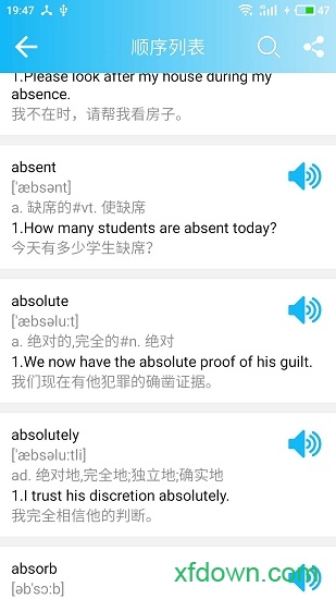 进行单词记忆的时候,点击单词可以收听单词的读音
