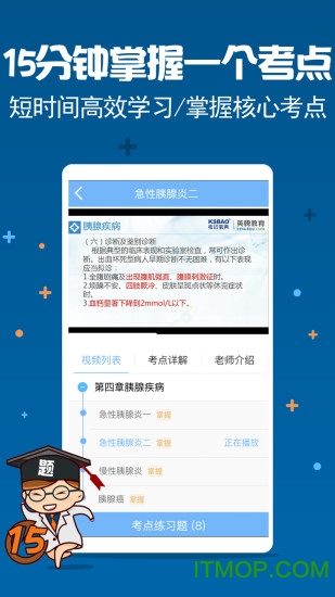 医学中级职称app是一款专为医学院校学生和医护工作者量身定制的专业学习软件,致力于帮助用户高效备考医学中级职称考试。该软件整合了海量优质学习资源,采用科学的教学方法,让用户能够在短时间内精准掌握考试核心知识点,大幅提升备考效率。无论您是正在准备考试的医学生,还是需要晋升职称的医护人员,这款app都能为您提供全方位的备考支持,欢迎有需要的用户前往IT猫扑下载体验!
