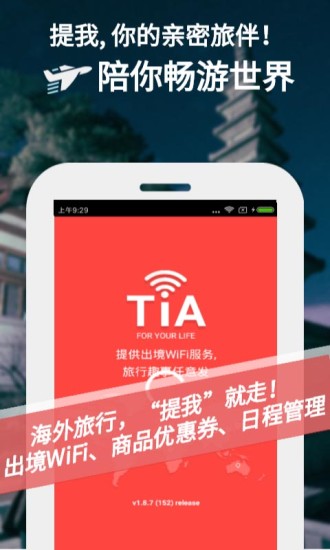 作为一款专业的旅游出行应用,提我TiA整合了出境WiFi、智能行程规划、本地优惠信息等多项实用功能。我们深入了解旅行者的需求,通过与全球优质服务商合作,致力于为每位用户打造无缝衔接的出境体验。无论是商务出行还是休闲度假,提我都能为您提供个性化的解决方案。