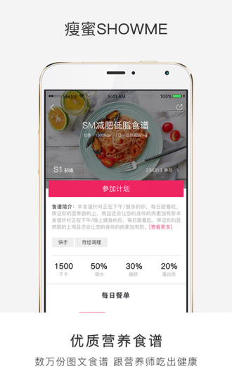 根据不同人群的年龄、性别、健康状况等特征,《瘦蜜》设置了精细的食谱分类系统。用户可以轻松找到最适合自己的饮食方案,实现精准营养。