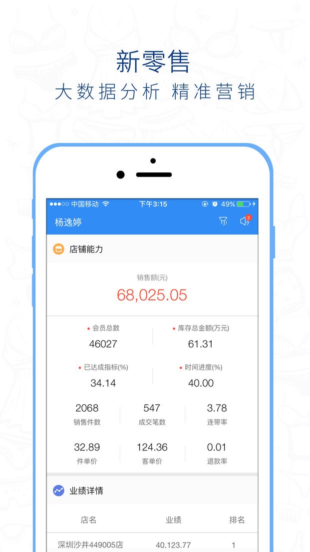 【实时数据更全面】APP整合了商品信息、库存数据、销售数据、会员数据以及店网一体化结算数据,所有数据实时更新,让运营者能够快速响应市场变化。