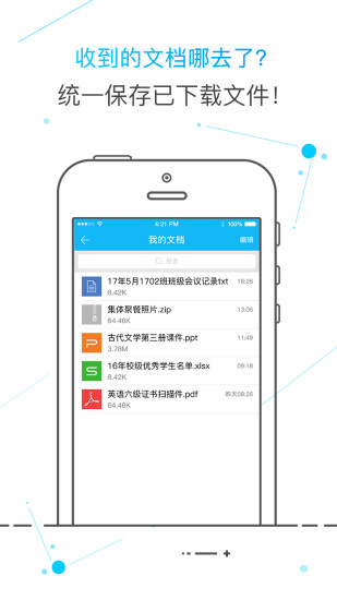 邮洽校园创新性地打通了邮件与聊天的界限,所有下载的文件都会自动归类保存。无论是邮件附件还是聊天文件,都会统一存储在文档管理中心,用户可以随时快速查找和重复使用,极大提升工作效率。