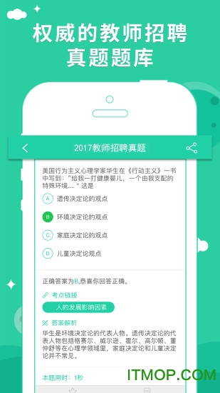 拥有它,海量题库任你刷。软件收录了全国各省市近10年的教师招聘考试真题,包含幼儿园、小学、初中、高中各学段的考试内容。题库按照教育综合知识、学科专业知识等考试模块精细分类,支持智能组卷、错题重练、专项突破等多种练习模式。每日更新的模拟试题让您随时掌握最新考试动态,精准把握命题趋势。
