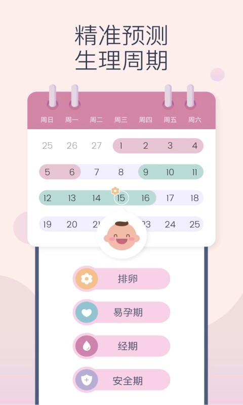 专为安卓用户优化的操作界面,让月经不调的女性能够轻松预测经期时间,告别突然造访的困扰;为选择自然避孕方式的用户提供精准的安全期计算,让亲密时光更无忧;帮助备孕女性准确掌握排卵规律,提高受孕几率;为孕早期妈妈提供专业的健康监测,陪伴您度过关键的孕初期阶段。