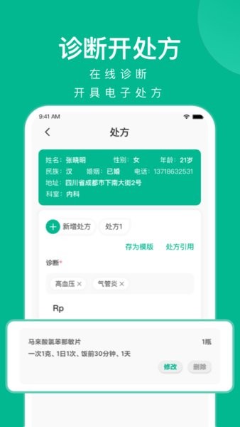 【电子处方管理】通过国家认证的电子签名系统,医生可在线开具具有法律效力的电子处方。处方药品信息实时同步至合作药房,支持医保在线结算,大幅提升就医便利性。