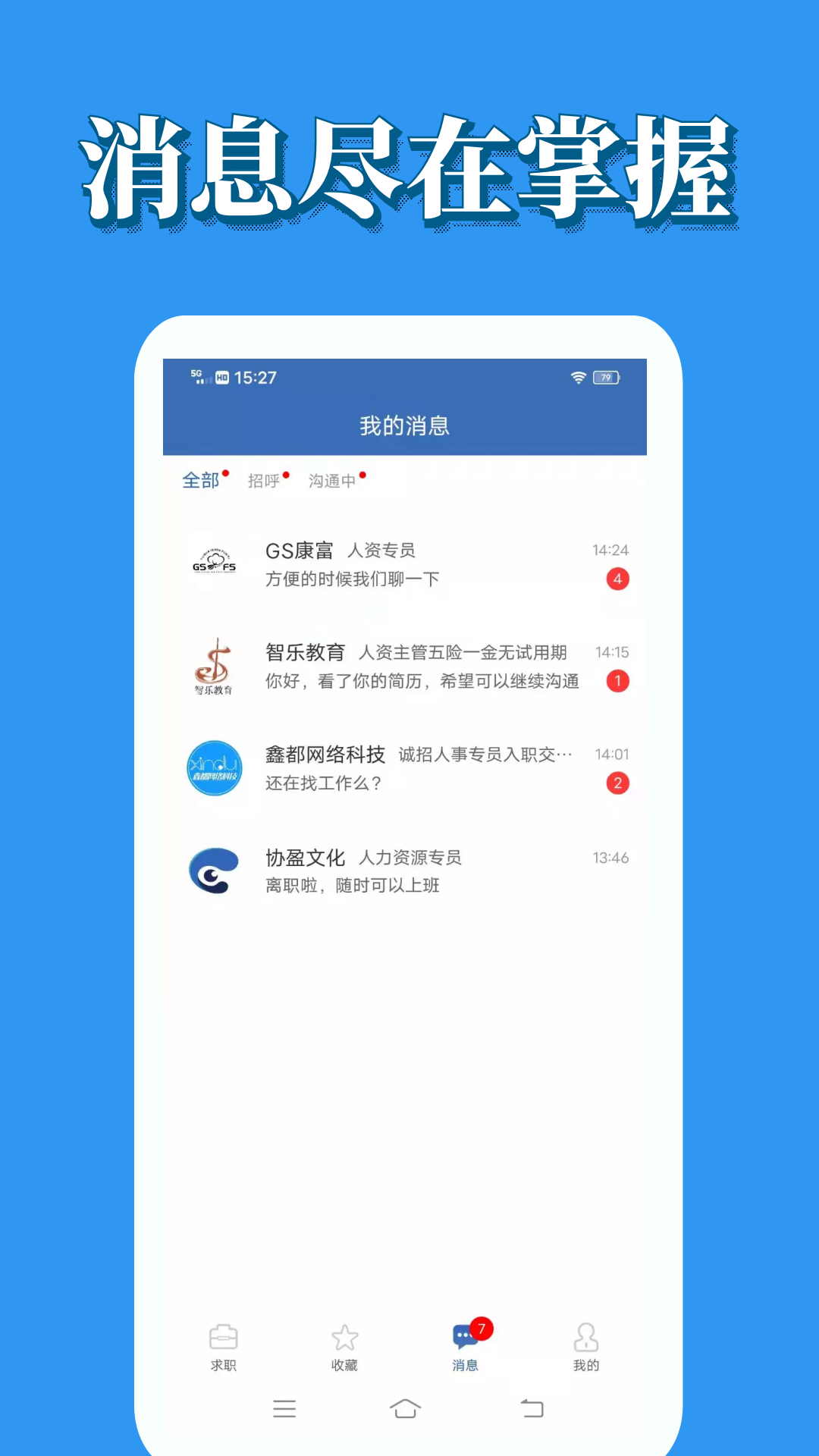 - 智能消息管理:重要消息实时提醒,垃圾信息自动过滤,让求职更高效