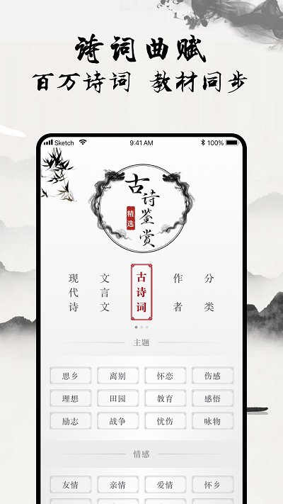 完全免费使用,没有任何隐藏收费项目或VIP限制;界面设计简洁大方,没有繁杂的广告干扰学习体验;收录了从《诗经》到近代诗词的完整作品库,堪称移动端的诗词百科全书;每首诗词都提供专业朗读、逐句注释和背景解析,帮助用户全面理解作品;支持离线下载功能,随时随地都能享受诗词之美。