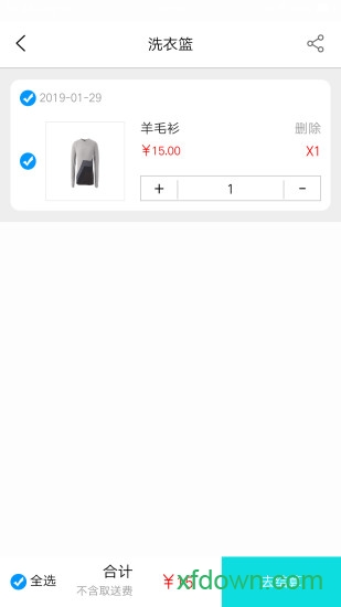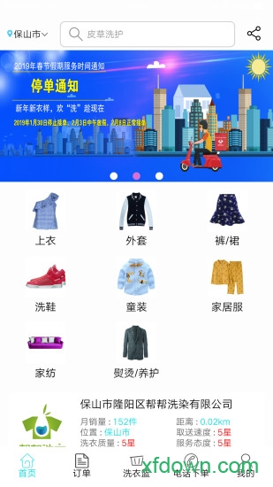 打开APP后,首页会显示各类洗衣服务选项,首先选择您需要清洗的衣物类型