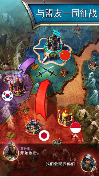率领自己的队伍征战更多的领土,能够成功登上王位宝座。游戏包含上百张风格迥异的地图,从沙漠绿洲到雪域高原,玩家需要因地制宜制定征服计划,通过外交结盟或武力征服扩大势力范围。