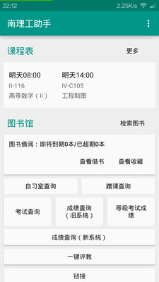 南理工助手app是专为南京理工大学师生打造的校园生活与学习服务平台,集实用功能与便捷操作为一体。这款应用不仅提供课表查询、成绩管理等基础服务,还整合了图书馆资源、自习室预约等特色功能,让校园生活更加智能化。通过简洁直观的界面设计,学生可以快速获取各类校园资讯,实现一站式信息查询。无论是日常学习安排还是考试准备,南理工助手都能提供及时有效的支持,成为南理工学子不可或缺的校园生活伴侣。