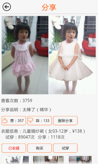 试穿效果一键分享功能,方便获取朋友建议,还能直接跳转购买页面。