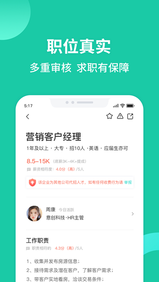 用户评价:多数用户反馈平台职位信息真实,匹配度高,平均满意度达4.8分。