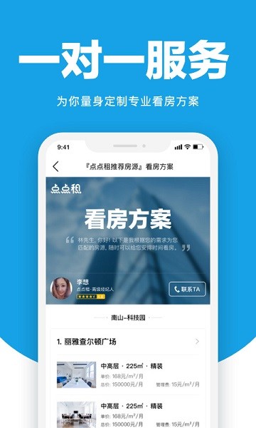 点点租写字楼出租网是一款专注于写字楼租赁服务的在线平台,旨在为用户提供高效、便捷的办公空间租赁解决方案。通过该平台,用户可以轻松浏览全国范围内的写字楼资源,筛选符合自身需求的办公场所。点点租不仅提供详细的房源信息,还支持在线预约看房、租金计算、合同签订等一站式服务,帮助用户节省时间和精力。无论是初创企业还是大型公司,点点租都能为其提供个性化的租赁方案,满足不同规模和预算的需求。平台还配备了专业的客服团队,随时为用户解答疑问,确保租赁过程顺畅无忧。