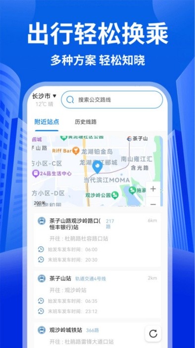 基于当前位置智能推荐周边公交站点,显示站点停靠的所有公交线路。支持按距离排序,并标注最近一班车的到站时间,让用户随时掌握周边公交动态。