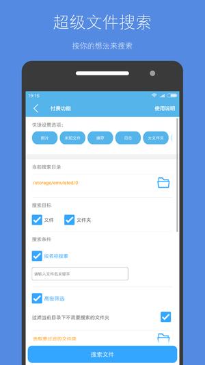 超级搜索:支持按名称、大小、数量、时间、扩展名等多种条件进行精细搜索;