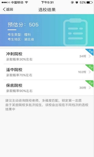 智能选校系统:考生只需输入预估分或实际高考分数,系统就会基于科学的算法模型,从全国数千所高校中筛选出最适合的院校推荐,大大节省选校时间。