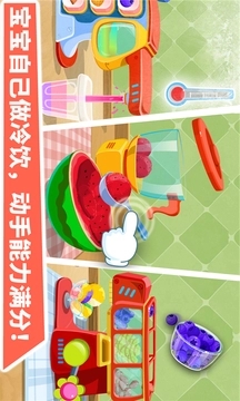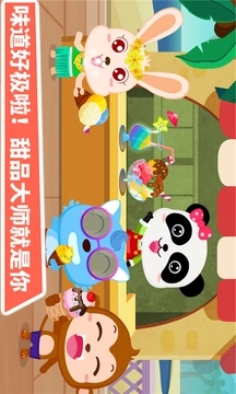 欢迎来到甜蜜的甜品世界!在这里,每个小朋友都能成为最棒的甜品店店长。伴随着欢快的《甜品店》主题曲,让我们一起开启美味的冒险之旅吧!无论是清爽的果汁、绵密的沙冰、香甜的冰淇淋还是可口的冰棒,在这里你都能亲手制作。游戏特别设计了简单有趣的操作方式,宝宝们可以通过切水果、操作机器等互动环节,全方位锻炼手眼协调能力。