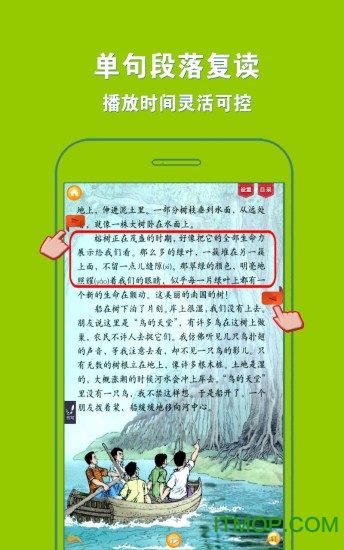 五种播放模式:顺序播放、单句跟读、课文循环播放、单句复读、A-B复读模式,满足不同学习需求