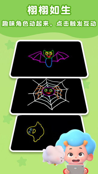 精美绘画模式,绘画结合动画,激发儿童想象力。独特的动态绘画效果让作品栩栩如生,增强绘画成就感。