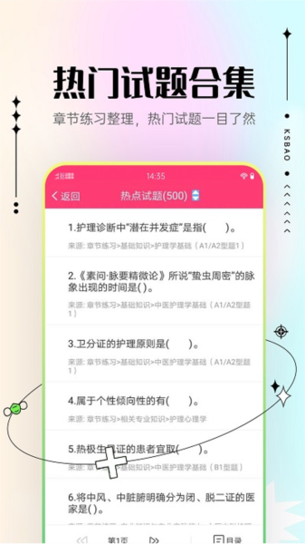 主管护师考试宝典软件是一款基于大数据和互联网技术精心打造的在线教育平台,专为护理专业人员的中级职称晋升考试量身定制。作为您的智能学习助手,该平台整合了海量优质题库资源,并邀请资深名师提供在线指导,通过科学的学习路径设计和高效的教学方法,帮助您全面提升学习效率和考试成绩。平台采用短视频形式进行知识点讲解,每段15分钟左右的视频内容聚焦于核心考点和高频错题解析,让您能够快速掌握关键知识点。此外,平台还提供重点考点视频精讲和考前特训课程,深入剖析护理考试命题方向,通过详细解析直击考试重点。英腾教育医学培训中心全程提供专业教学服务,为您的卫生中级职称晋升考试保驾护航。