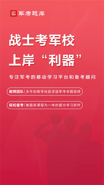 军考题库是一款专为军人考试设计的智能学习软件,致力于为现役及预备役军人提供全面的备考解决方案。软件整合了历年军考真题、模拟试题及最新考试大纲,通过智能算法为用户定制个性化学习路径。平台实时更新军考政策动态,覆盖文化科目、军事理论等核心考点,支持章节练习、模拟考试、错题重做等多种学习模式。用户可随时记录学习笔记,系统自动生成学习报告,帮助精准定位知识盲点,实现高效备考。