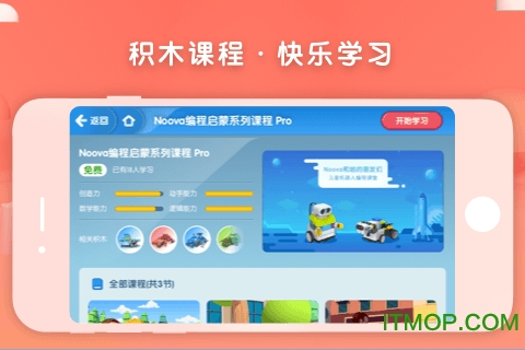 配合Noova编程启蒙机器人系列,孩子可以体验完整的STEAM学习流程。除了基础的拼搭指导,应用还提供编程挑战任务,从简单的动作序列到复杂的条件判断循序渐进。完成编程后,孩子可以直接在app中预览机器人执行效果,实时调试修改。更有趣的是,孩子可以录制自己的声音作为机器人指令,创造独一无二的互动体验。