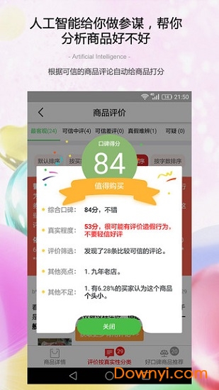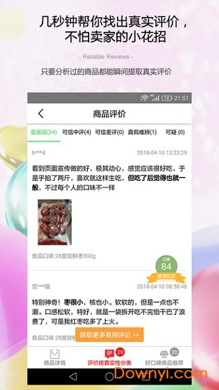 【迅速找到真实可信的商品评论】防刷刷app拥有强大的数据库支持,能够快速提取商品的历史可信评价。这些评价经过严格筛选,主要包含用户对商品缺点的真实描述,让消费者能够更客观地了解商品的实际情况。目前该功能支持淘宝和天猫平台,未来还将逐步扩展到其他电商平台。