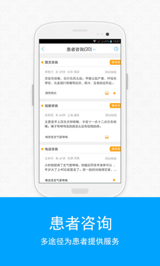 患者咨询:支持图文、语音等多种形式的即时沟通方式