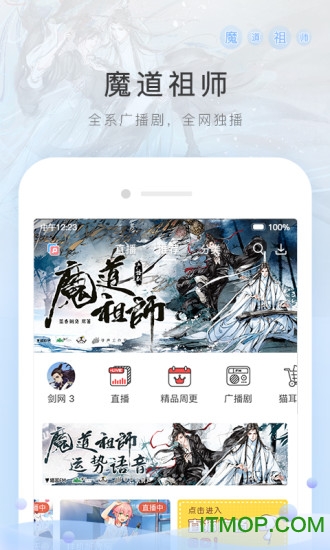 1. 独家正版IP:与多家动漫公司合作,首发《天官赐福》《魔道祖师》等热门广播剧。