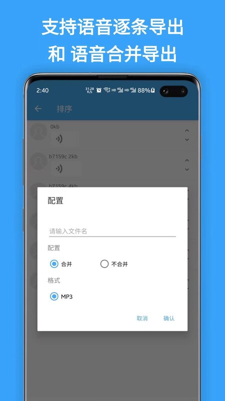 支持语音排序,在合并导出前对语音进行排序,可按时间、时长或自定义顺序灵活调整语音片段。