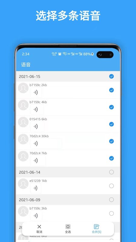 单个或多个语音合并为完整音频文件,支持自定义分段和添加背景音乐,让语音剪辑更加个性化。