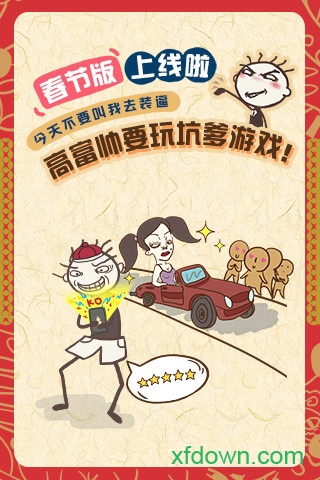 在这个充满欢乐的春节特别版本中,你将面对24个科学都无法解释的离奇事件!坑爹游戏春节版重磅回归,带来更多令人捧腹的挑战。准备好迎接红包雨了吗?新年新气象,红包任你抢,只要你敢来,我们就敢发!当别人家围坐在电视机前看春晚时,你是否想约上心仪的妹纸,一起等待新年倒计时,看场电影,数数星星?世界那么大,让坑7带你去探索:与黄飞鸿一起斗狮,路上偶遇劫匪却被隔壁老王神奇解围,回家后还要应对推销员的连环轰炸……一系列滑稽可笑的春节趣事,裹挟着浓浓的节日气息扑面而来,让你笑到停不下来!