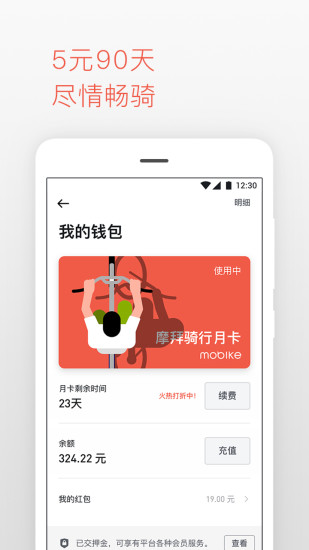 下载摩拜单车app客户端,支持iOS和安卓系统,安装简单快捷。注册并绑定身份证资料,完成实名认证保障账户安全。支付宝或微信支付押金299元,押金可随时申请退还。交完押金会提示充值预付款(也就是车子的租金,可以1元起充),余额充足才能开始骑行。扫车身上的二维码,就会远程开锁。(车身有两处有二维码,一处是车龙头上面,一处是锁上面)。扫完码,系统就会远程开锁,并开始计费,骑行结束后手动关锁即可自动结束计费。
