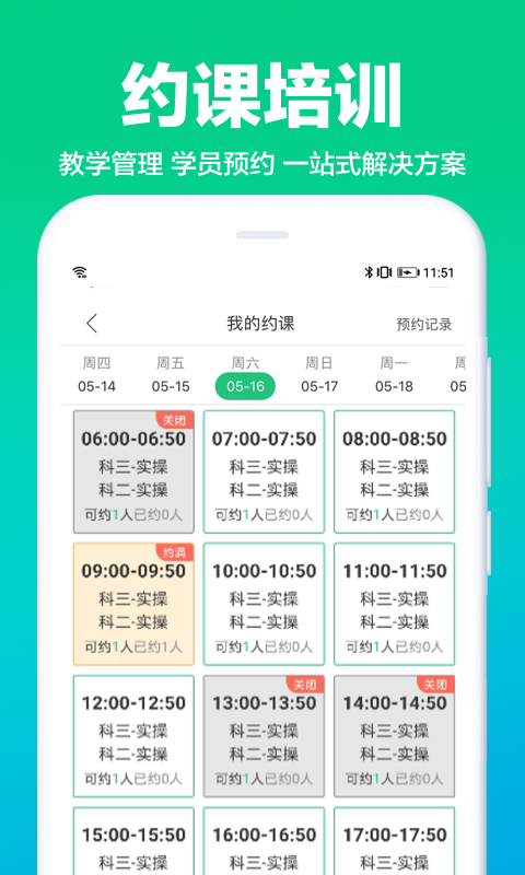 预约培训智能化管理,学员预约、教练排课多种模式,教练实时获取课程安排,教学培训更高效。系统支持自动排课和手动调整,可根据教练时间灵活安排,避免课程冲突。学员也能通过APP随时查看自己的课程进度。