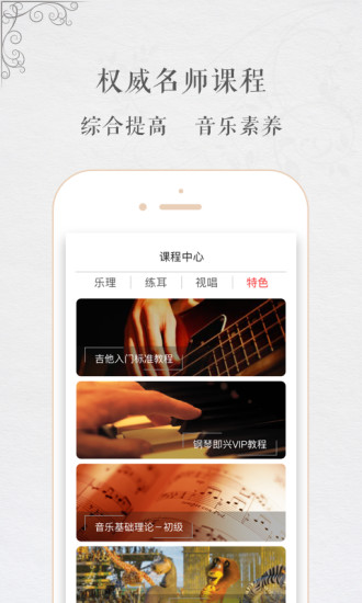 【特色课程】音乐基础理论、音乐启蒙、钢琴课程、吉他入门、钢琴提高等。课程由专业音乐院校教师录制,采用循序渐进的教学方式,配合课后练习和测评,确保学习效果。