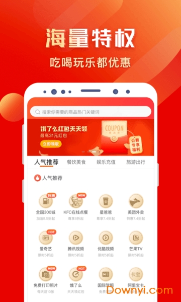 影视特权:包含优酷、爱奇艺、腾讯视频等主流视频网站的VIP会员优惠,追剧观影更省钱。