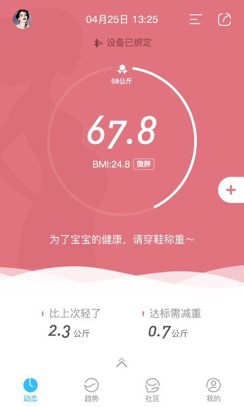 通过蓝牙快速连接智能体脂秤,实时同步称重数据,确保测量结果的准确性