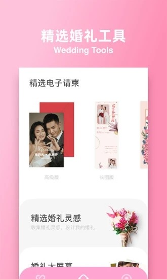 婚礼时光app是一款集创意、服务与互动于一体的婚礼筹备应用。它不仅帮助新人省时省力地规划婚礼,还能以独特的方式记录下这段珍贵的人生旅程。通过智能化的功能设计,婚礼时光app让繁琐的婚礼筹备变得简单有趣,新人只需动动手指,就能与伴侣共同定制专属的婚礼计划。无论是寻找灵感、预订服务,还是制作电子请柬,这款应用都能让您的婚礼筹备过程充满乐趣与惊喜。