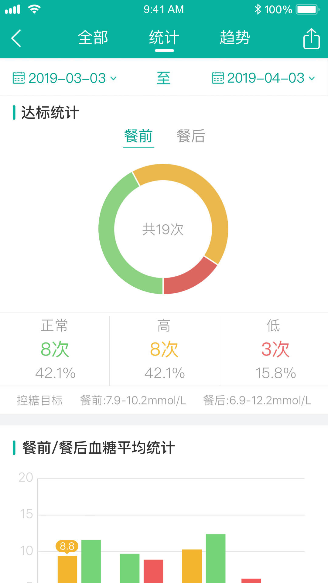 该软件全面记录患者的用药历史、复诊进度及治疗反馈,形成完整的健康档案。通过智能算法分析血糖波动规律,为每位患者定制科学的自测频率和控糖目标。系统自动生成可视化统计图表,直观展示患者血糖达标率与趋势变化,辅助医生进行精准干预。同时支持多人协作模式,让医护团队、家属共同参与健康管理,真正实现"医患同心,携手抗糖"的照护理念。