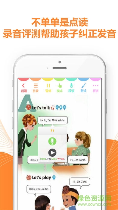 这款app最突出的特点是其强大的点读功能,学生可以自由选择顺序朗读或精准点读模式,轻松实现课本内容的跟读学习。软件采用先进的智能语音识别技术,能够实时纠正发音错误,帮助孩子练就标准英语口语。通过专业的语音测评系统,孩子们可以自主练习听说能力,系统会给出详细的发音评分和改进建议。