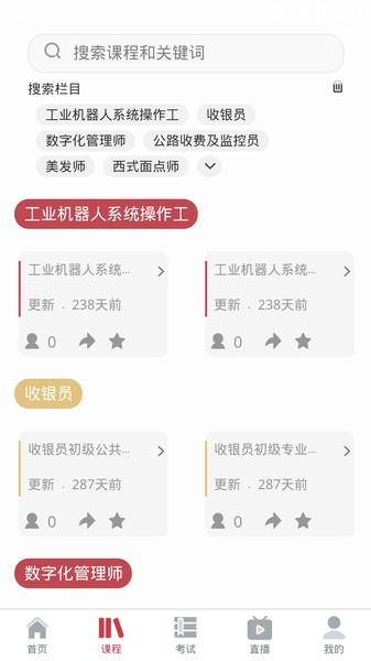 平台提供了上百个职业的培训课程和教学资源,包括但不限于工匠精神、工业机器人系统操作员、数字化管理师、钳工、车工、电工、铣工、多工序数控机床操作调整工、企业人力资源管理师、公共、汽车装调工、汽车维修工、化学检验员、快递员、快件处理员、中式烹调师、茶艺师、育婴员、保育员等。这些课程均由行业专家精心设计,确保内容的专业性和实用性。