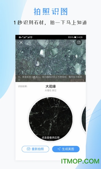 石图app是一款专为石材行业打造的综合性服务平台,致力于为用户提供全面、透明的石材交易信息。平台汇聚了海量石材品种、实时价格行情、专业辨别技巧等核心内容,通过数字化手段重构传统石材交易流程。无论是寻找优质供应商、了解市场动态,还是获取专业采购建议,石图都能满足不同用户的多元化需求。其创新的AI识别技术和精准的产区地图功能,更让石材采购变得智能高效。现已在IT猫扑平台开放下载,助力石材从业者把握商机。