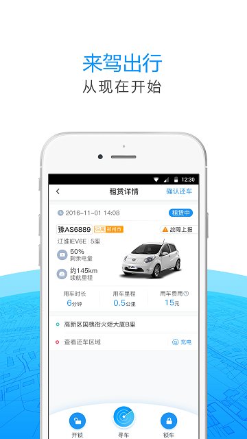 智能化的租车流程只需三步:App选车、扫码解锁、自助还车。全程无需钥匙交接,手机就是车钥匙。
