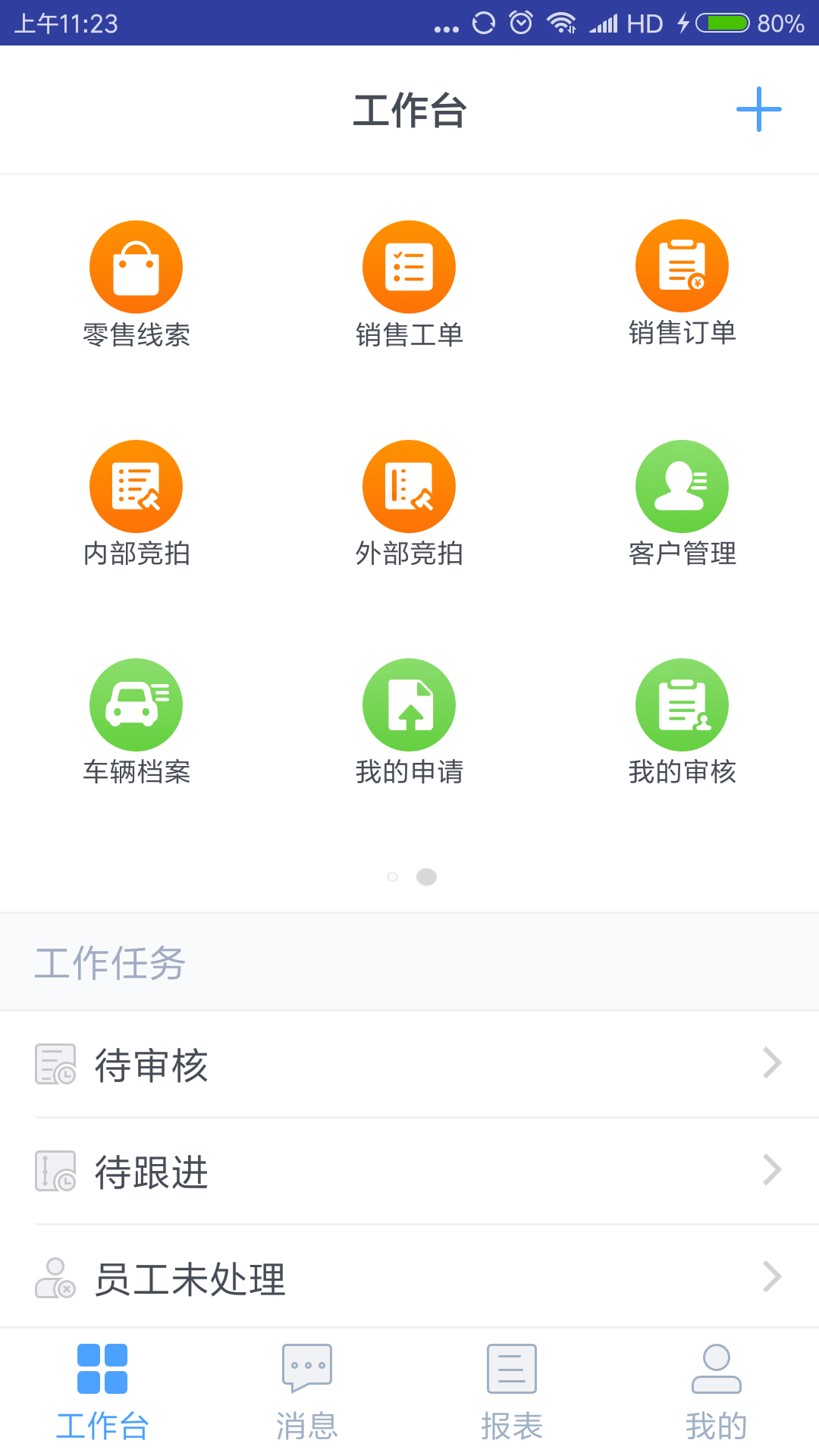 赢车网UCMSApp的工作台功能设计科学完善,覆盖了二手车业务全流程。采购模块包含采购线索追踪、评估工单处理和采购订单管理;库存管理方面提供定价中心、库存实时监控和库存共享功能;业务流程支持调拨管理、过户办理和退车处理;销售环节包含零售线索跟进、销售工单处理和销售订单管理;此外还提供内部竞拍、外部竞拍等特色功能,以及完善的客户关系管理、车辆档案管理和审批流程管理。这些功能模块相互协同,构建了一个完整的业务闭环。