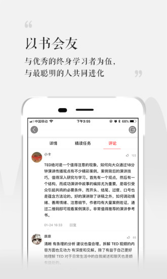 精读班:每日专家领读,2-4周带你读透一本书。由各领域权威专家亲自指导,通过系统化的学习计划,帮助用户深入理解书籍精髓,建立完整的知识框架。
