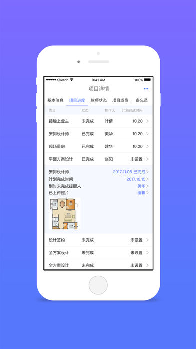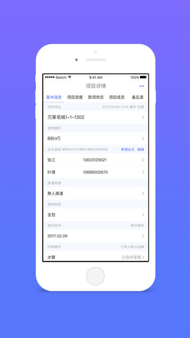 添加了业主模式,可供业主查看装修进度;业主端支持实时接收施工日志、验收照片,增强服务透明度。