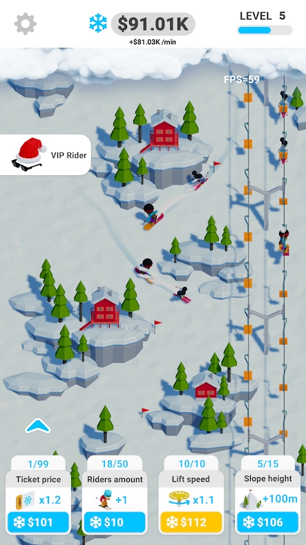 看着游客们在你的滑雪场快乐玩耍,那种成就感令人愉悦。游戏采用简单易用的点击操作来经营滑雪场,通过不断赚钱和升级,你的领地会越来越大,收益也会越来越高。